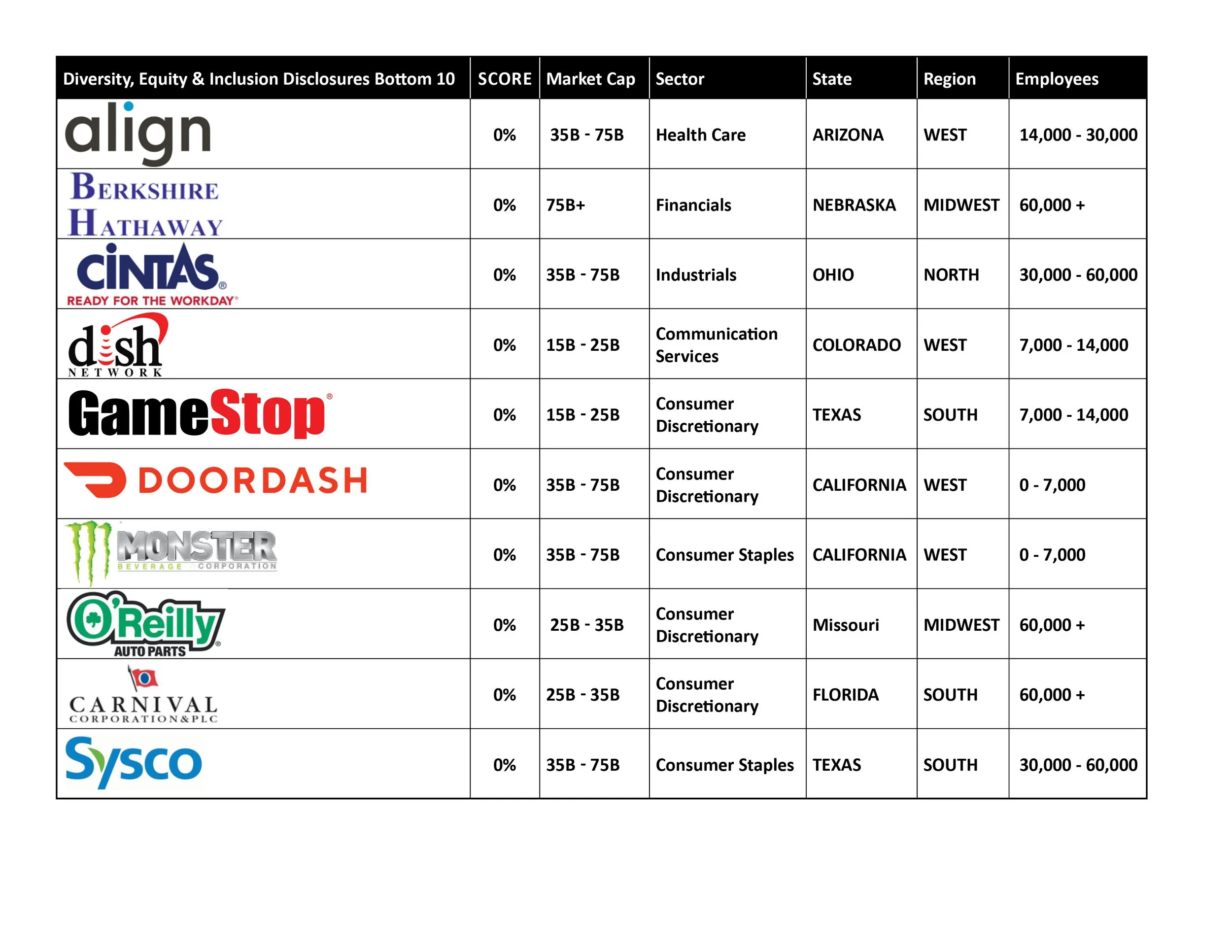 The intention of this initiative is to provide a public resource showing the current level of DEI disclosure from companies. Transparency and reporting, in and of itself, is an important best-practice to be celebrated. When a company releases meaningful data on its workforce composition alongside its rates of promotion, recruitment, and retention of diverse employees it illustrates a number of things to its stakeholders: