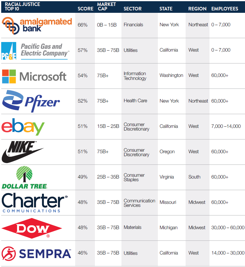 The Racial Justice Initiative directly engages public companies on their racial equity and DEI policies and practices. We use the Racial Justice Scorecards as the backbone of our corporate engagement strategy and use our key performance indicators (KPIs) as evaluation guidelines to track and monitor corporate progress. Our Racial Justice Scorecards have been used to create standards for investors, companies, and stakeholders to act responsibly in favor of justice and racial equity.